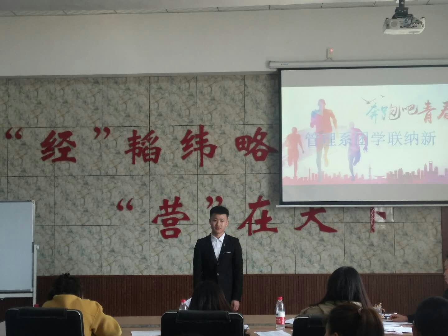 为了保证学生会有新鲜血液的注入,有足够高素质的后备力量,更有效地开展学生会工作,实现学生会干部新老交替,为新生展示能力提供发挥的天空。2019年3月23日吉林师范大学博达学院管理系于3607教室召开纳新宣讲活动,出席此次活动的有管理系辅导员耿丽娜老师、梁婧老师、姜莹莹老师、蒋迪老师、学生会干部以及2018级新生。