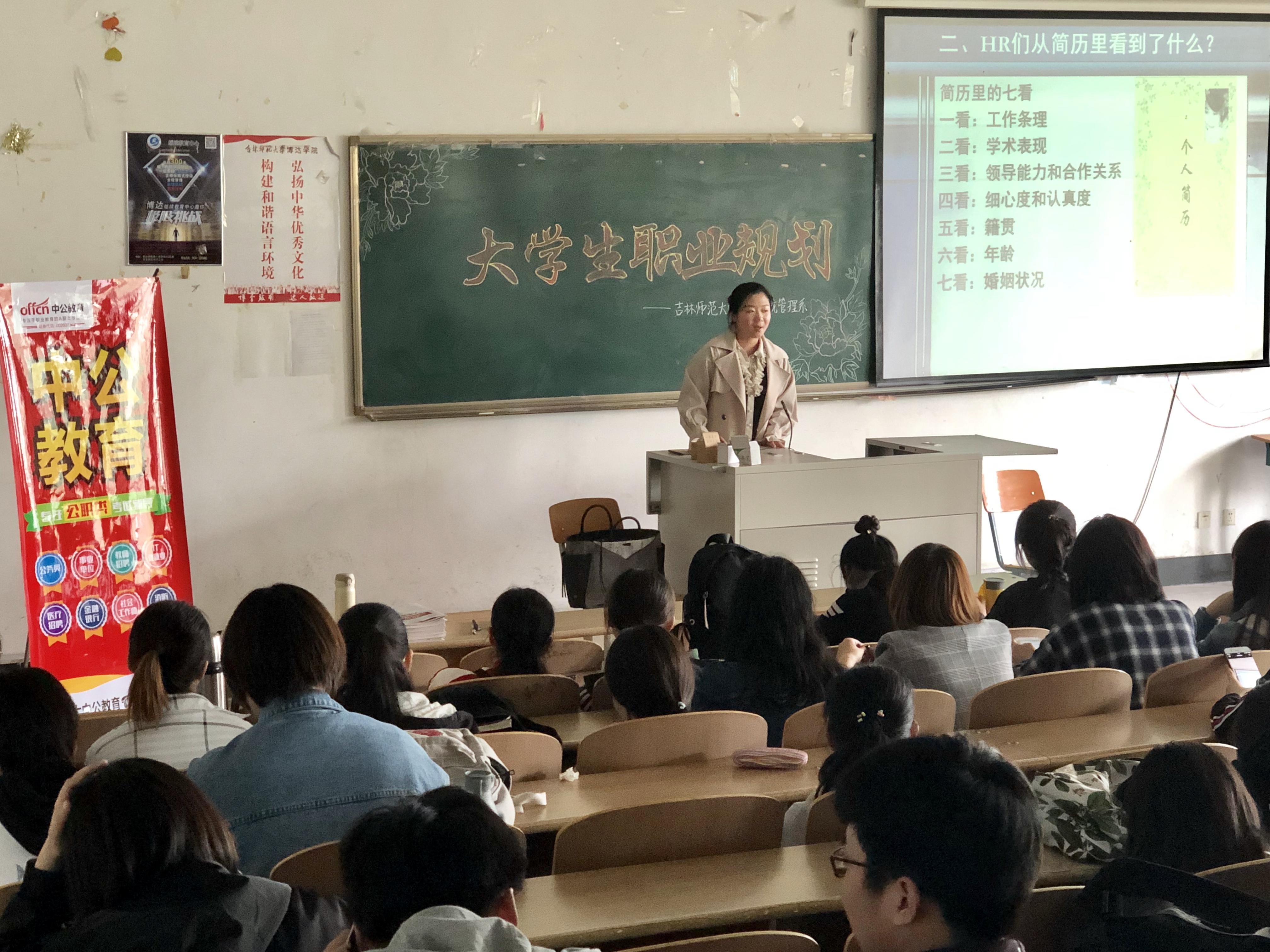就业是每一个大学生毕业之后都要面对的问题,为让同学们树立职业生涯发展规划意识、提供更多有利信息,吉林师范大学博达学院管理系于2019年5月13日,在3520阶梯教室举办了“大学生职业规划”的会议讲座。出席本次会议的是博达学院16级管理系各班学生。本次会议讲座由郝丽君和李美童老师主持。