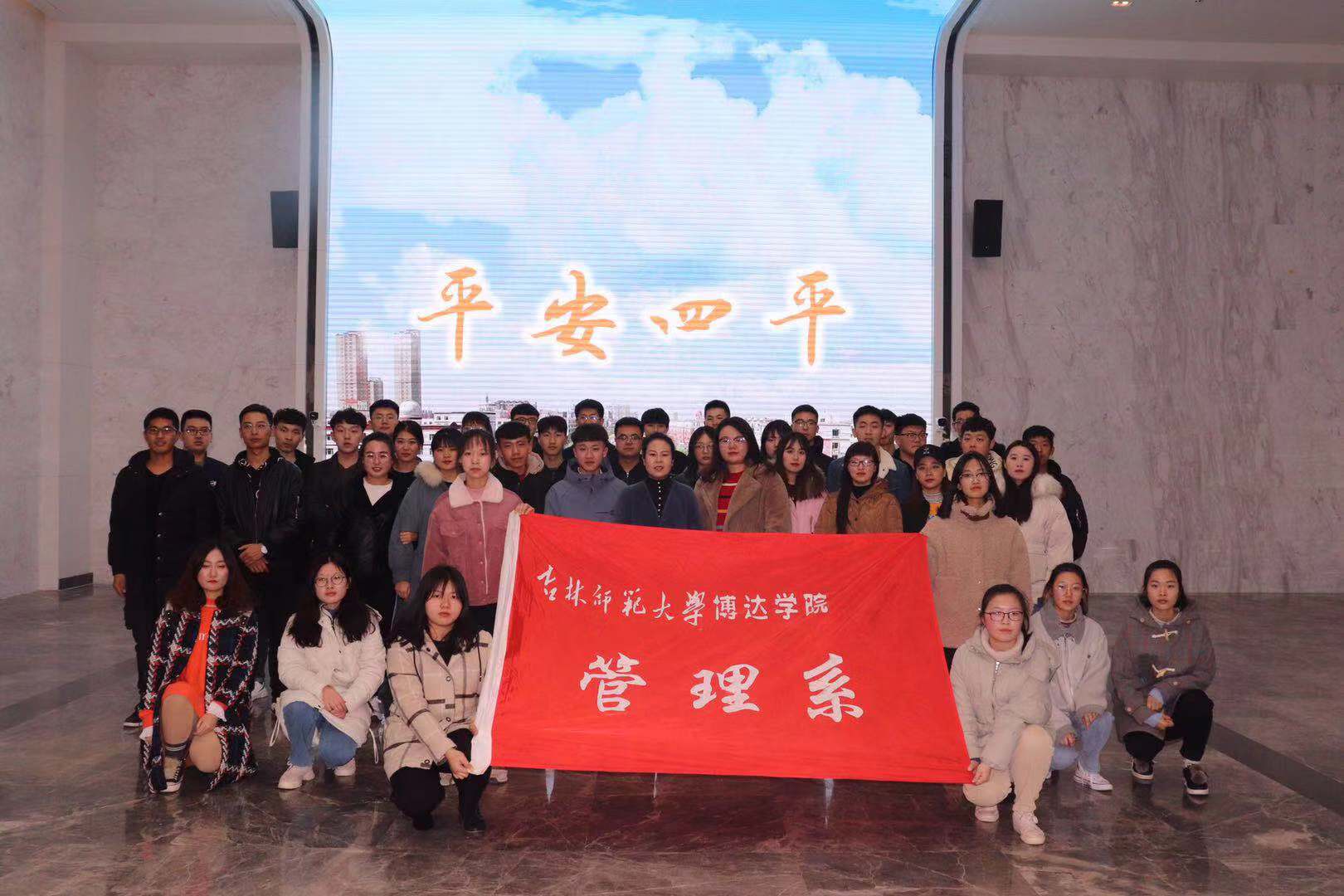 为了进一步增强学生日常安全防范意识和提高自我保护能力,维护校园稳定,2019年2月27日下午,吉林师范大学博达学院管理系学工办主任耿丽娜老师和辅导员梁婧老师,组织管理系各年级各班同学到平安四平宣传教育馆参观学习。