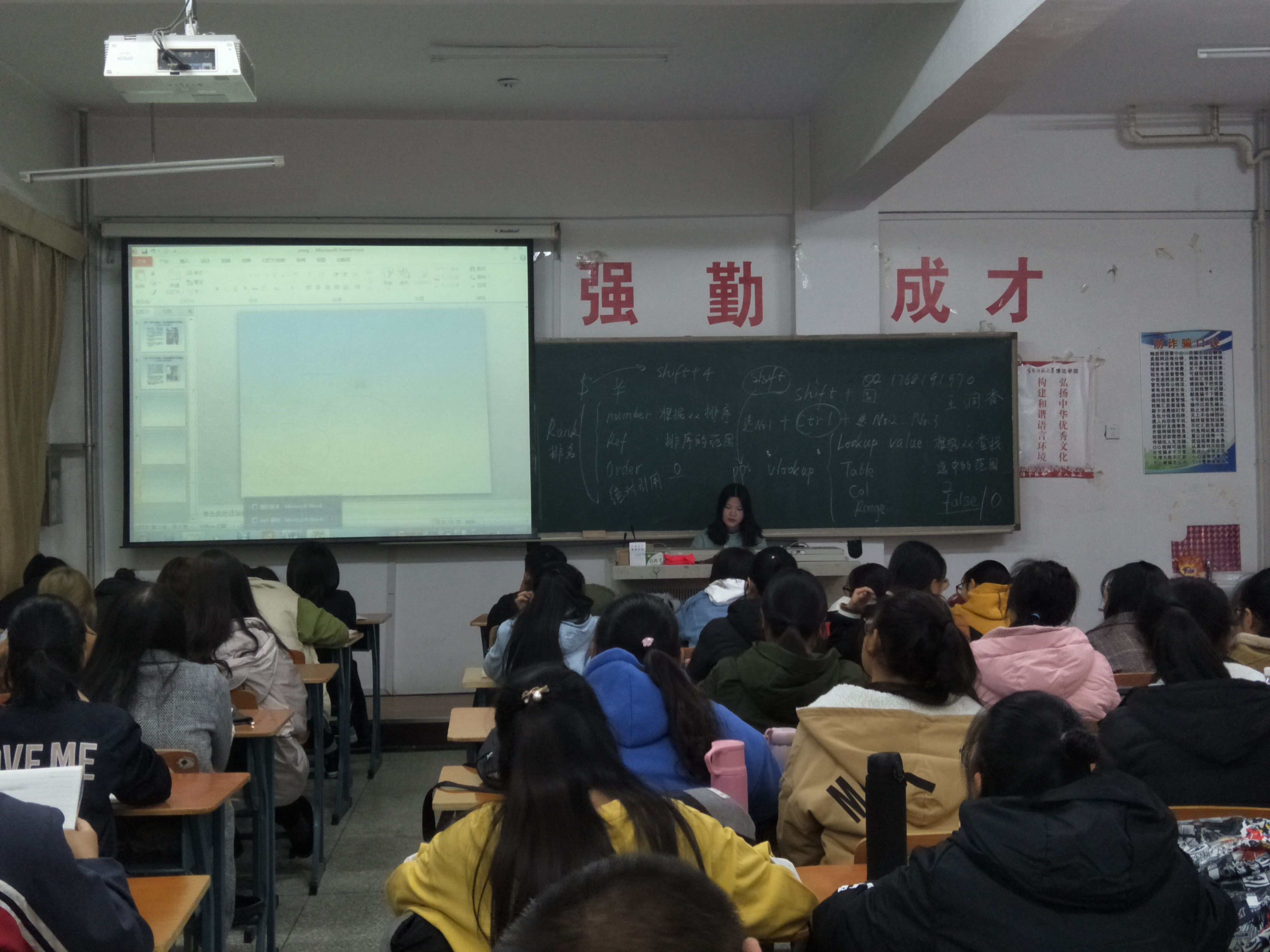 晚自习期间,16级的学姐带领着同学做一套计算机二级的真题,分析题干,教授一些做题技巧,让同学们认识到计算机的正确用途,领略到计算机的简洁、效率。随着办公自动化在社会中的普及,Microsoft Office作为重要组件越来越得到广泛使用,Word可以帮助用户创建、编辑、排版、打印各类用途的文档;Excel可以制作出各种电子表格,使用公式和函数对数字进行复杂地运算;PPT能将表达的内容直观、形象地展示给观众。Microsoft Office正逐渐成为用户日常工作、学习和生活中信息处理的好帮手,也是现代办公室不可缺少的软件之一。这就要求新时代的人才具有适应岗位、职业变化的能力,以及计算机的普及办公的智能化能力。