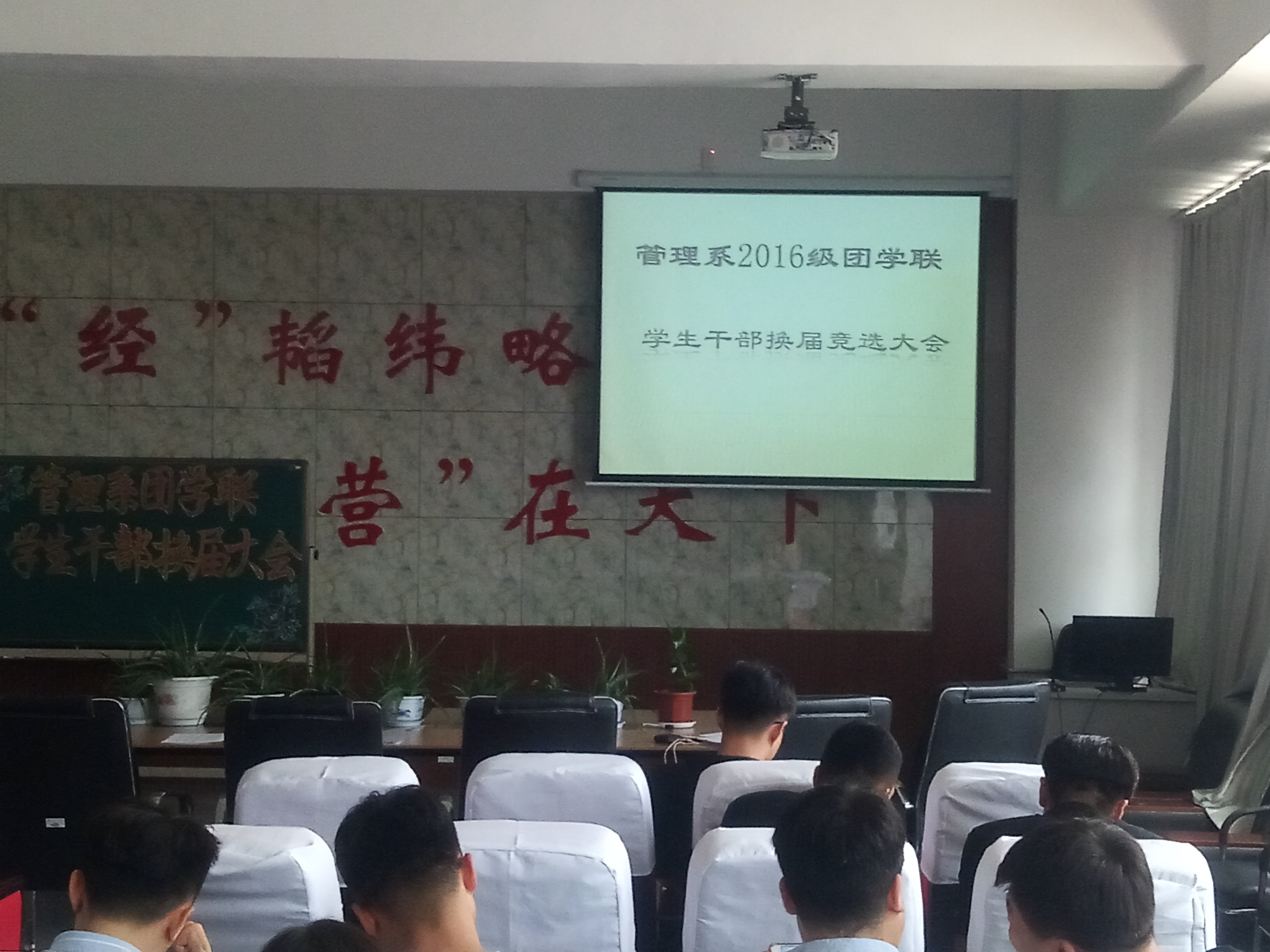 管理系学生会干部秉承着“实事求是,脚踏实地,为系服务,为系争光”的理念,让管理系这个大家庭能够很好的发展,建立了一套良好的学生管理体系和监督体系;本次竞选的部门主要分为三项:分团委、学生会、社团联合会,这些部门相辅相成,一直在不懈努力着。会议上同学们一一上台进行自我剖析,分析自己的优势、劣势,发表自己对竞选的部门现有弊端的看法,以及如何管理好自己的团队。当然,四位辅导员以及三位主席对同学提出问题,一方面是考验同学的现场应变能力和心理素质;另一方面也测试了同学的工作能力和语言组织能力。面对如此激励的竞争,同学们表现出从容对待、不骄不躁。每位竞选者不仅能够沉着的回答老师提出的所有问题,同时也努力地把自己最优秀的一面展示给大家。