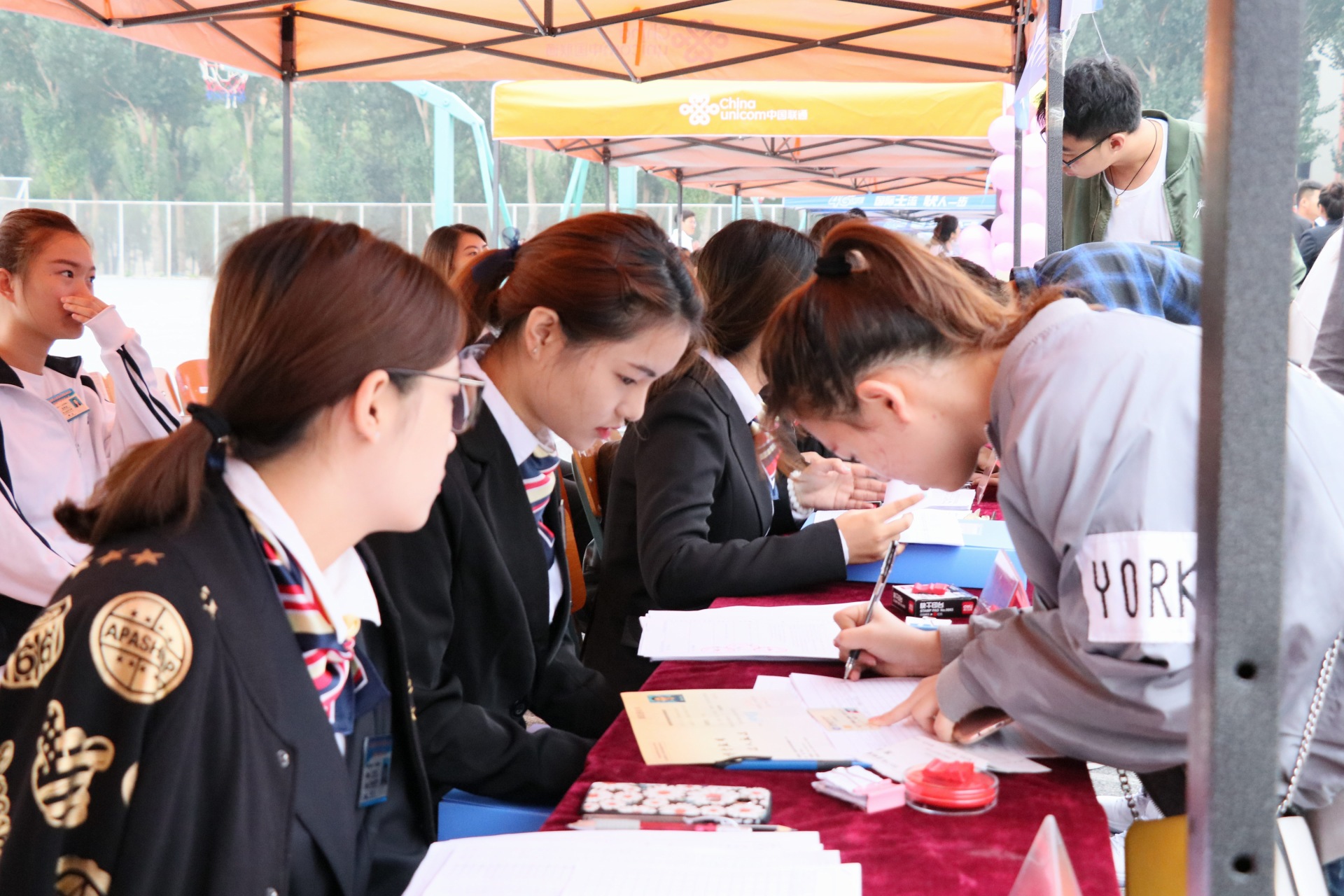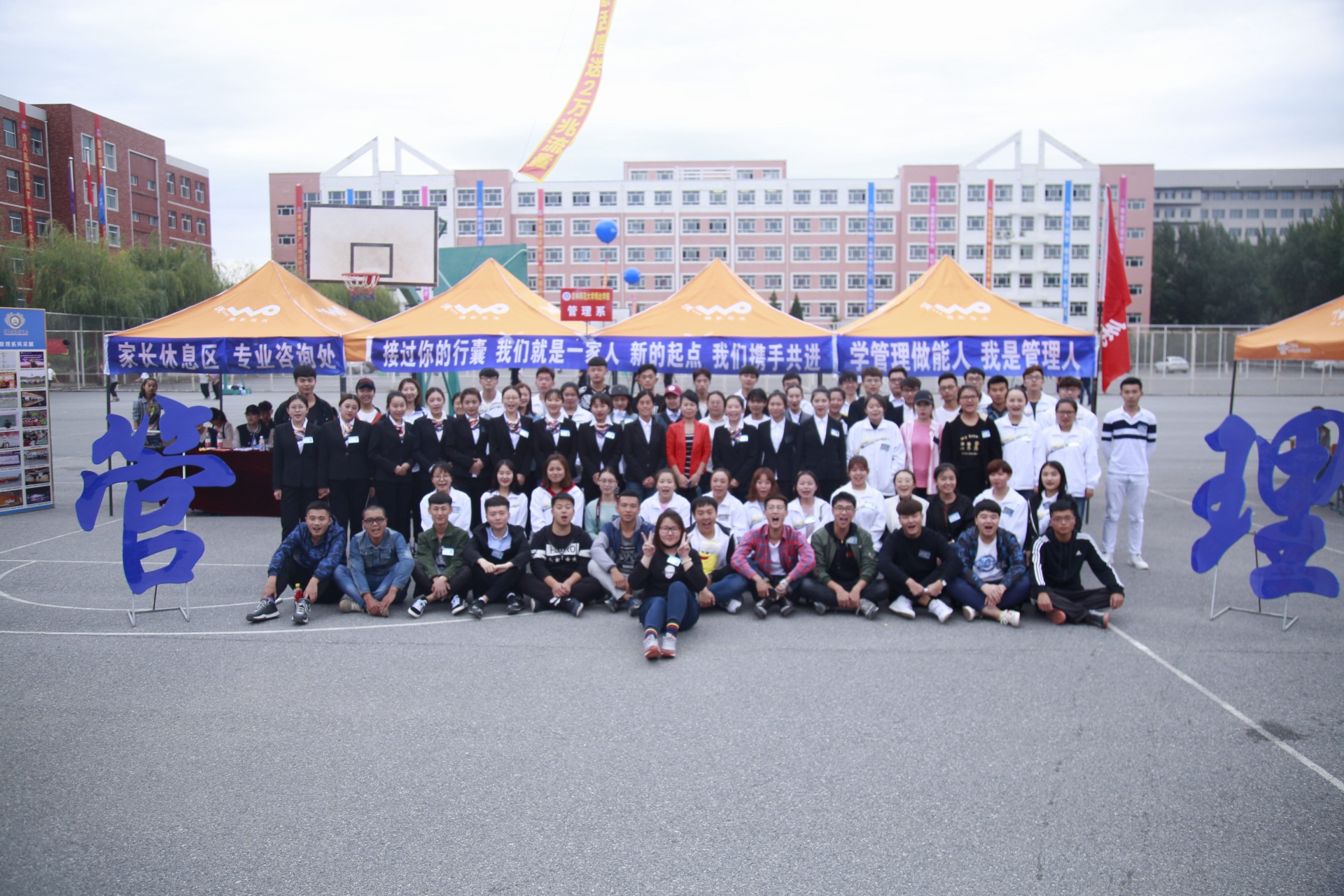 早晨四点多各部学生会干部都在操场上集合为迎新做一些准备工作,七点多钟,就有陆陆续续17级的萌新们前来报道。,先在操场上进行登记、缴费、注册然后由学长或学姐帮拿行李,带去寝室安顿好。路途中学长学姐们会向新生和家长介绍学校的基本状况,让新生们和家长们对校园有一些了解,对新环境感到不再陌生。背着梦想的行囊,带着初入异地高校的新鲜、兴奋和期待,新生们怀揣着欢喜与激动开启了全新的大学生活。迎新就这样匆忙的进行着,持续两天的忙碌,学长学姐都很劳累,但是心中却是很舒坦的,可以帮助17级的学弟学妹们,解决各种各样的困惑与疑问。让他们能更好的度过大学的生活!十年寒窗苦读,终于迎来了今天这一时刻,想必每个新来的学生都是充满着期望,陪你一路走来的父母更是对你充满着更大的期盼,把希望都寄托在了你的身上。