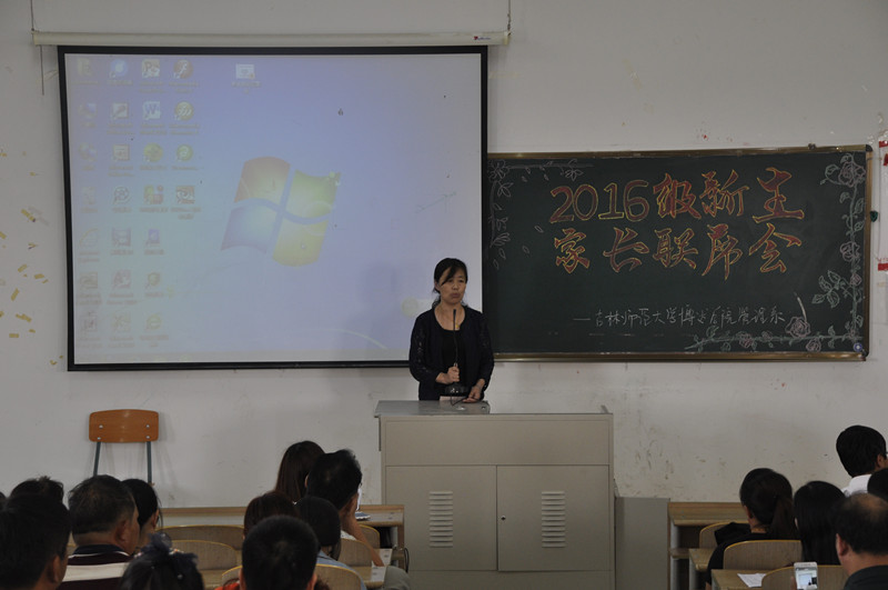 为了能让新生家长增进对我校的了解,可以更加放心的把孩子留在这里学习,吉林师范大学博达学院管理系于2016年9月10日下午1:30在3521教室开展了2016级新生家长联席会。出席此次会议的有张立峰主任和赵亚芬主任,还有学工办主任耿丽娜老师,辅导员谷博老师、王钰冲老师等。