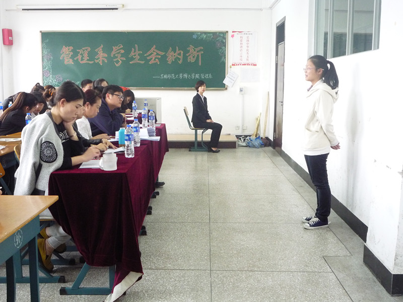 出席本次活动的有管理系所有辅导员老师以及学生会主席团和各部部长。15级新生积极报名参加,竞选演讲时时丝毫没有怯场,每一个人都扬着自信的笑脸说明自己的来意,并阐述为什么要加入这个部门。各部门部长也是认真筛选,争取做到不漏掉任何一个适合自己部门的人才。