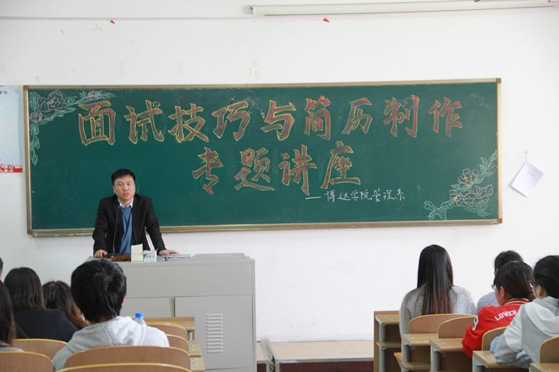 为提高毕业生面试成功率,解答疑虑,2016年4月20日下午3:30分,博达学院管理系于3420教室举办“技巧与简历制作专题讲座”,管理系辅导员老师以及大三学生参加了此次讲座。
