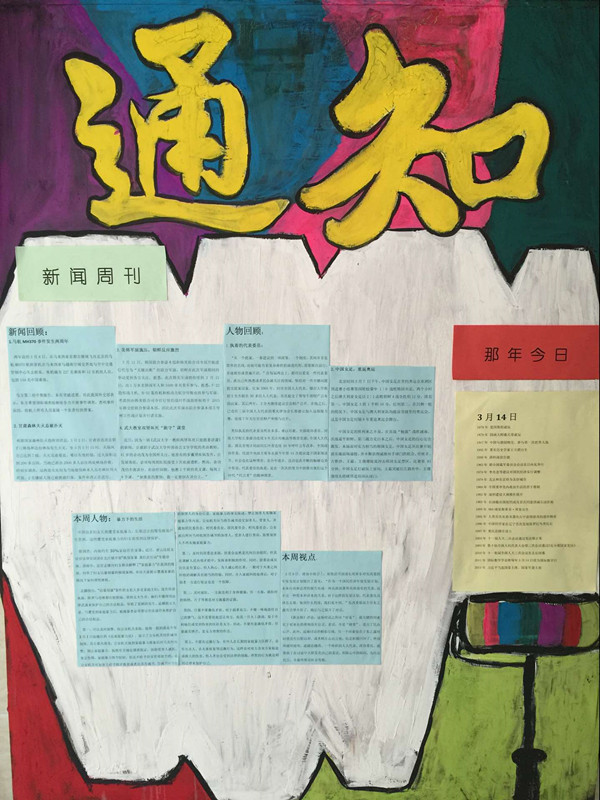 以这种前卫的方式设计通知栏,不仅可以吸引同学们眼球,让大家可以更多的关注当今热点问题,还可以培养同学们对新闻事件的兴趣,提升学生自身涵养。