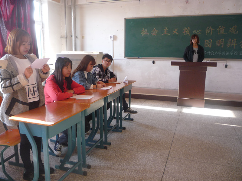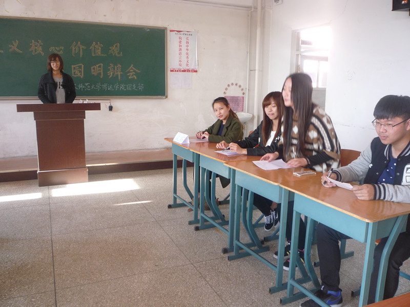为大力弘扬社会主义核心价值观,加强学生间的交流,10月14日下午3点博达学院管理系团支部在1516教室组织的有关社会主义核心价值观的辩论赛。