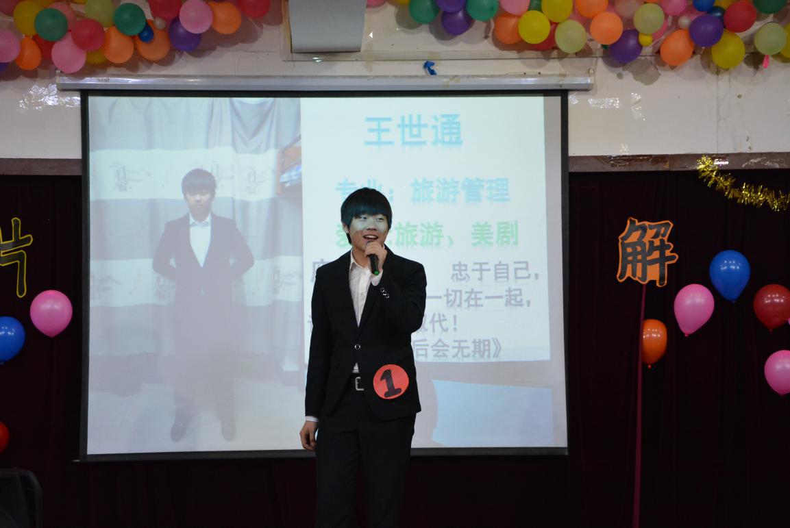 本次活动中,参赛选手各展风采,共同团结协作,通过精心准备的介绍向大家展示了自己的特色,充满自信而又不失幽默的现场解说独具一格,令人耳目一新。现场更是高潮迭起,掌声不断。适时的观众互动环节使现场气氛继续升温。最终,14管理系旅游管理的王世通凭借出色表现摘得桂冠。