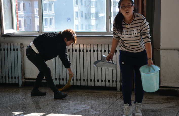 一个干净整洁的学习环境对课堂学习尤为重要,管理系的辅导员一致决定在24日的下午,对全系教室进行卫生清扫工作。中午12点,同学们带着工具赶到了各自负责的教室,由负责人布置完任务后,大家火速投入到卫生清扫的工作中。从教室的地面、桌椅、黑板、窗户、甚至是墙面,大家不放过任何一个角落。我系的辅导员耿丽娜、谷博、吕慧威、汤鹏宇老师也加入了清扫队伍,他们拿起拖把和扫帚与同学们一起为教室的卫生奉献自己的力量。