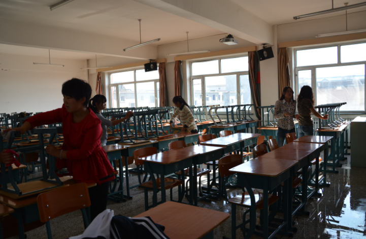 2014年9月24日,为保持教室卫生,营造良好学习环境,在管理系辅导员的带领下,管理系学生们对全系教室进行了卫生清扫工作。