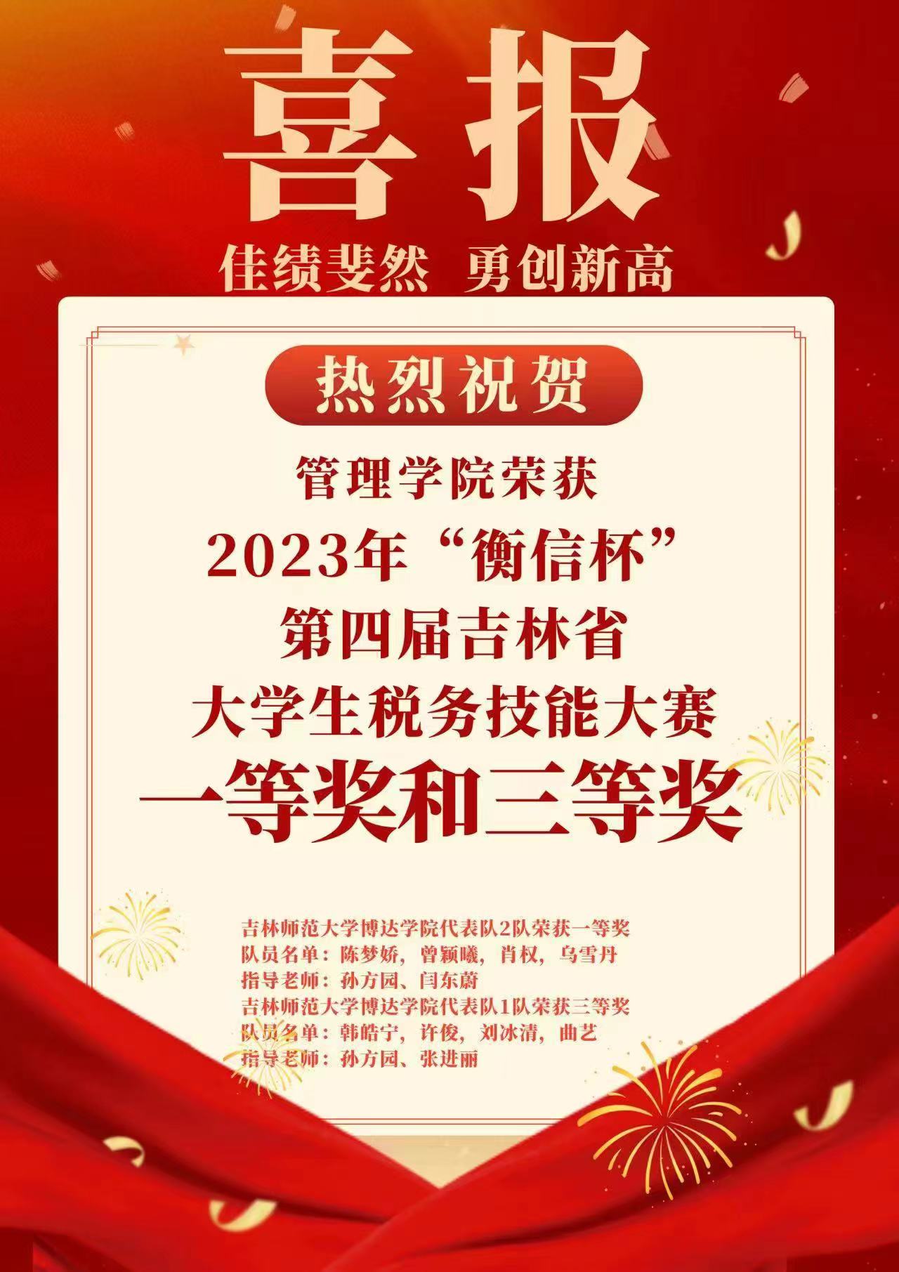 喜报!管理学院荣获2023年“衡信杯”第四届吉林省大学生税务技能大赛一等奖和三等奖