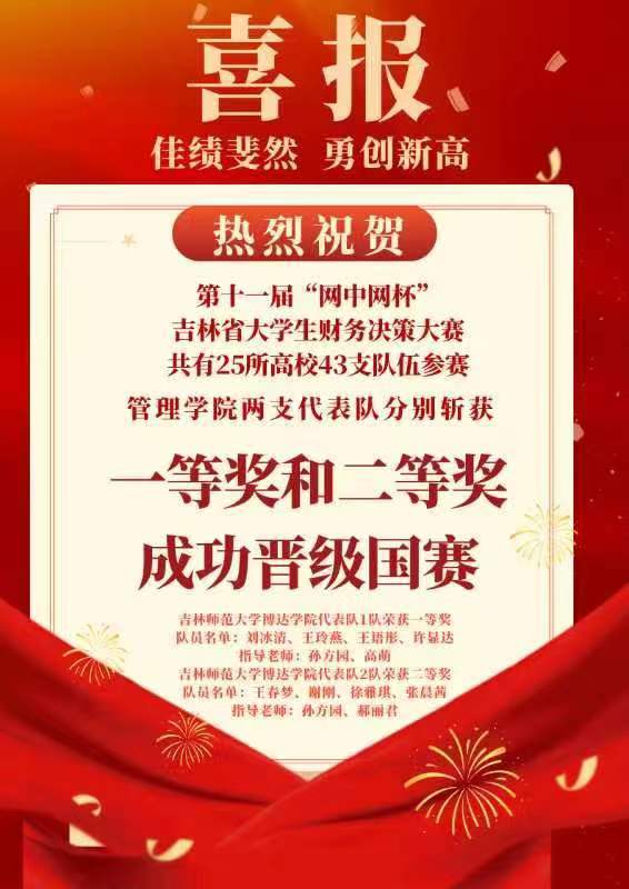喜报!管理学院两支代表队荣获第十一届“网中网杯”吉林省大学生财务决策大赛一等奖和二等奖