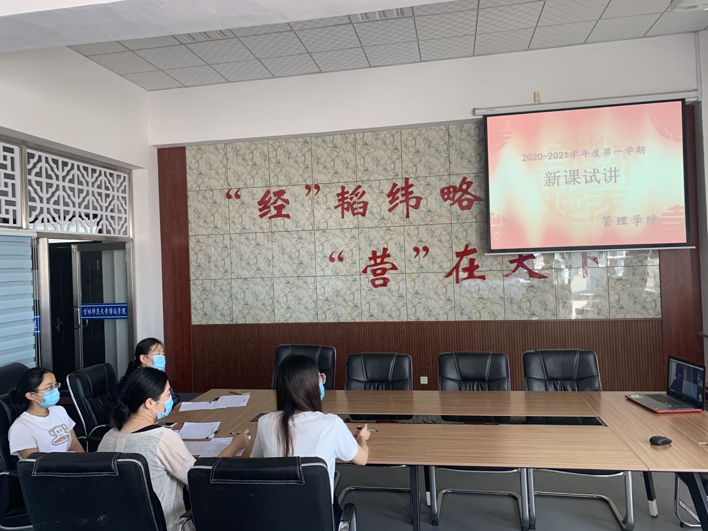 为规范教学管理,提高学院新开课程及新课教师的教学水平,提高学院教师的专业素质,严把教师课堂教学质量关,保障人才培养质量,7月8日,管理学院组织2020-2021-1学期新课教师试讲工作。管理学院院长赵亚芬副教授,副院长蔡艳杰老师,财务管理专业负责人刘越老师,财务管理专业张进丽副教授,市场营销专业负责人郝丽君老师参加了听课评分。本次试讲的新课共有6门,参加试讲的教师共有6位。