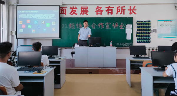 中软国际宣讲会向信息专业的同学们介绍了电商平台、大数据、网页开发、小程序开发等应用领域以及适用场景,魏经理还列举出许多我们熟知的软件,如百度、淘宝、支付平台等,帮助同学们更加了解“互联网+”与信息工程专业的联系,鼓励同学们选择自己擅长的方向去努力。结合实战工作经验魏经理还介绍了中软国际技术类岗位的分类与部门任职要求,帮助同学们更好地认识到学好专业知识的重要性,只有拥有扎实的专业知识基础,才能稳步于职场之中。会议最后中软国际吴总经理对博达学院与中软国际校企合作定制班新同学的到来表示热烈欢迎,希望信息工程专业的同学们在以后的学习过程中能够加倍努力,学有所成。