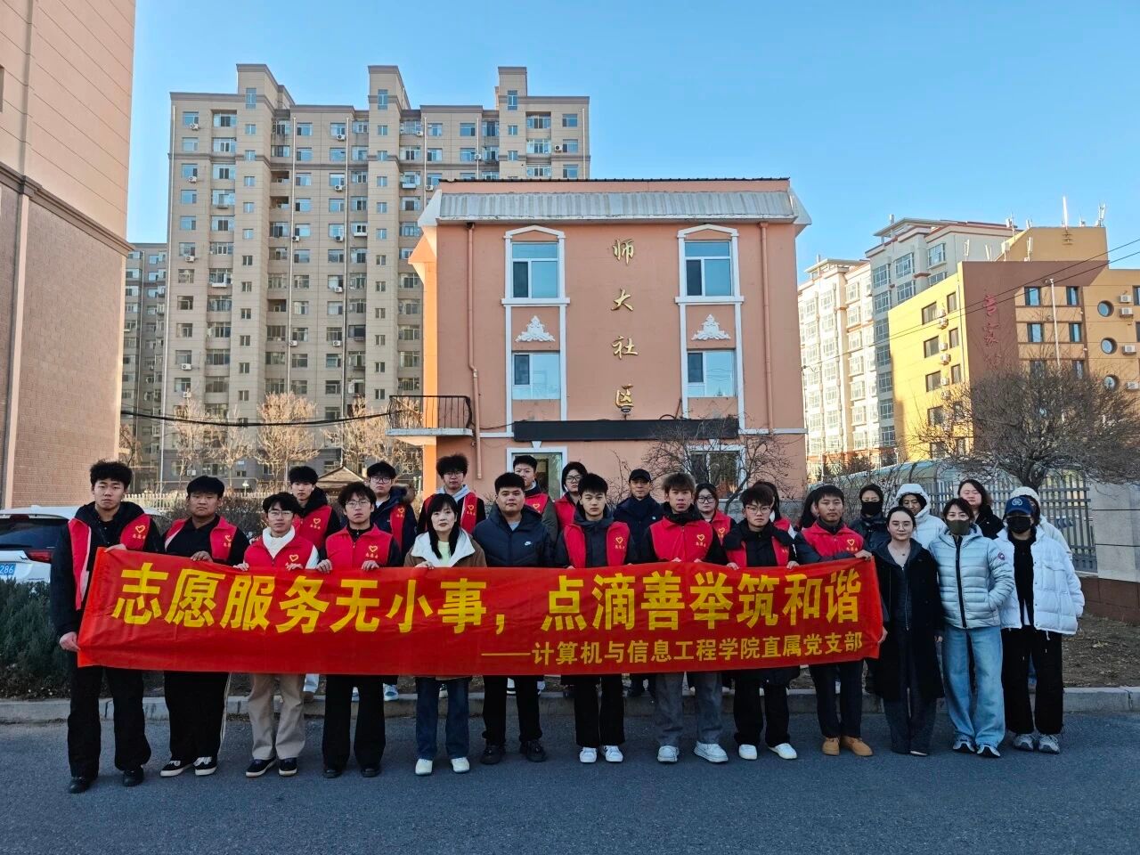 为弘扬“奉献、友爱、互助、进步”的志愿精神,践行服务社会的责任与担当,11月21日上午九点,计算机与信息工程学院直属党支部组织师生志愿者,深入社区开展了一场以“志愿服务无小事,点滴善举筑和谐”为主题的志愿服务活动。本次活动由直属党支部统筹安排,郑越洋老师带队指导。