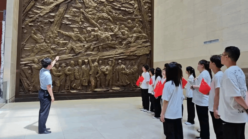 在东北沦陷史陈列馆内,师生党员们面向党旗庄严宣誓,一句句铿锵的誓言在耳畔久久回响,激荡人心。师生党员们在参观过程中进一步了解到馆内收藏展示的大量史实和实物,以及东北人民在十四年的抗日战争中表现出的英勇无畏和艰苦卓绝,党员们深刻感受到中国共产党领导下东北人民不屈的抗争意志和爱国主义精神。