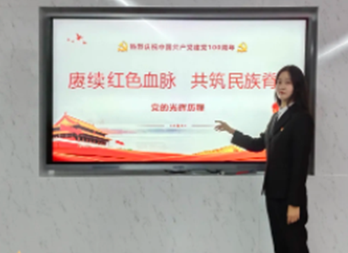 预备党员王玥同学为大家讲述党这百年的发展历程,讲述党的百年征程波澜壮阔,百年党史铸就辉煌。在百年接续奋斗中,我们党团结带领人民开辟了伟大道路,建立了伟大功业,铸就了伟大精神,积累了宝贵经验,创造了中华民族发展史,取得了人类社会进步史上令人刮目相看的奇迹。