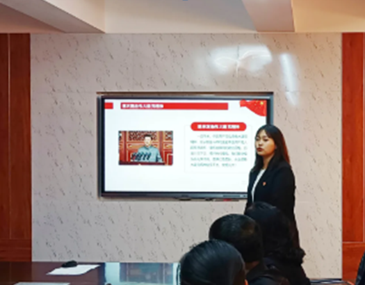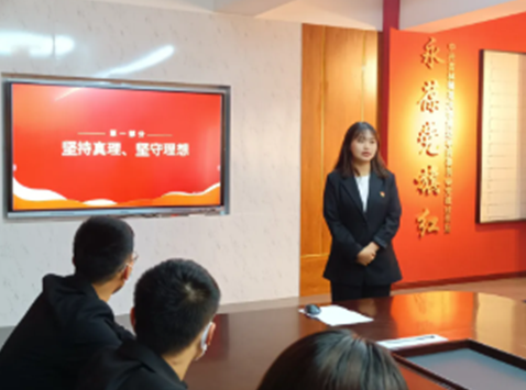 预备党员刘欣然同学为大家讲述党的故事,讲述党在波澜壮阔的历史进程中是怎样紧紧依靠人民跨过一道道坎,取得一个又一个的胜利,讲述党是如何总结经验开辟新思想,从毛泽东思想、中国特色社会主义理论讲述到今天的习近平新时代中国特色社会主义思想,中国共产党指导中国走向更好的道路和发展。