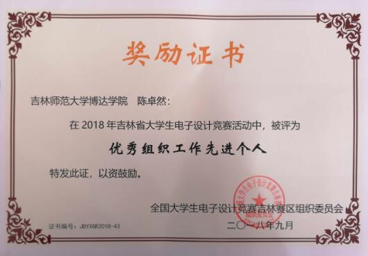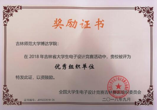 计算机与信息科学系在2018年吉林省大学生电子设计大赛中荣获二等奖1项,三等奖1项,2018年电子设计大赛优秀组织个人1人,计算机与信息科学系荣获2018年吉林省电子设计大赛优秀组织单位。