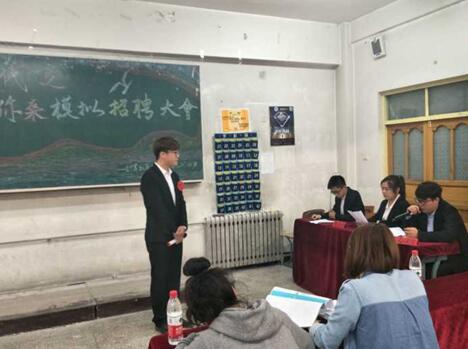 模拟招聘大赛主要面试的职位分为:人事专员,软件工程师,游戏测试工程师,程序员和销售总监五个职位,分别由五名学长学姐来面试。面试分为三环节:自我介绍,即兴演讲,职场问答。杨镇源学长在面试中谈吐大方,语惊四座;张洪斌学长在职场问答中语言幽默,使得评委老师忍俊不禁;贾笃圆学长沉着冷静,应对自如;于越学姐妙语连篇,但在即兴演讲中还有点小紧张;刘思佳学姐也发挥的十分出色。最后评委老师在现场进行打分并为学长学姐颁发证书。活动最后还以小剧场的方式为我们展示了职场面试礼仪知识。