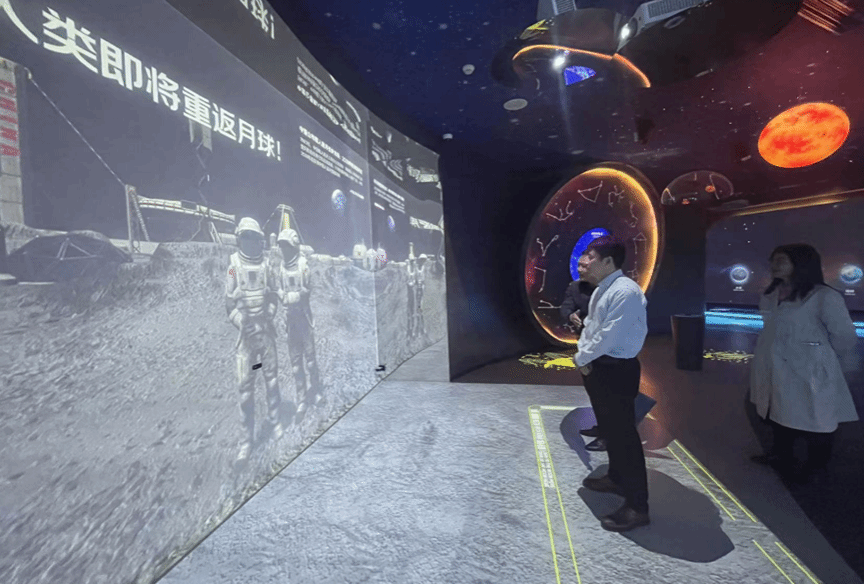 下午,访问团到访时空旅程科技有限公司(时空旅程科技馆),在企业领导陪同下参观了人工智能科技场馆,亲身体验智能设备、大数据应用等前沿技术,直观感受科技企业的创新活力与人才需求导向。