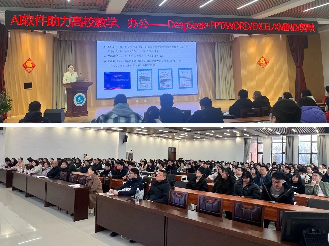 为进一步提升学校专职教师和教学管理人员人工智能素养,推动人工智能技术与教育教学深度融合,加快教育教学数字化转型,3月1日上午,教务处邀请计算机与信息科学学院专职教师王文在图书馆报告厅为学校全体专职教师和教学管理人员作“AI软件助力高校教学、办公——DeepSeek+PPT/WORD/EXCEL/XMIND/剪映”专题讲座,为学校新学期教育教学质量提升赋能开篇。教务处处长赵亚芬、就业创业工作处处长刘庆斌、学生工作处处长刘丽、大学生职业技能培训中心主任王艳荣及部分学院院长出席本次讲座。...