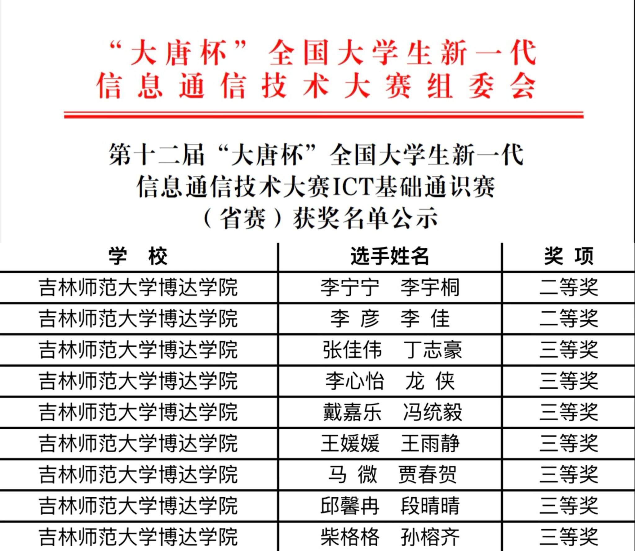 喜报:吉林师范大学博达学院在第十八届CCPC吉林省大学生程序设计竞赛中取得佳绩为培养大学生的实践能力和创新精神,进一步提高大学生程序设计水平和运用所学知识解决实际问题的能力,在吉林省教育厅的指导下,吉林省计算机协会主办,长春理工大学承办,第十八届吉林省大学生程序设计竞赛于2025年5月23日顺利举行,吉林省大学生程序设计竞赛为吉林省教育厅认定的普通高等学校大学生学科竞赛重要赛事之一,本次比赛博达学院共派出7支参赛队伍,...