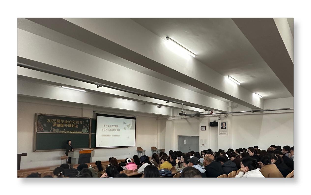 研讨会邀请文学院赵丹副教授围绕毕业论文指导流程及规范、各环节存在的问题及原因、解决策略等内容进行深度分享和交流,并针对常见的指导难点和误区提出了建设性的解决方案,极大地丰富了与会教师们的理论知识和实践经验。与会教师纷纷表示,此次研讨会内容丰富、针对性强,既拓宽了视野,也提升了自身的指导效能,对未来的毕业论文指导工作有极大帮助。