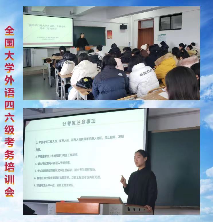 旨在满足教学管理人员发展的切身需求,进一步提升工作水平,助力教学管理人员快速成才,使教学管理工作稳步进行,教务处于11月24日上午8:10在综合楼1316,由教务处苏泳心老师为全体教学管理人员作“大学英语四、六级考试考务工作”专题培训。