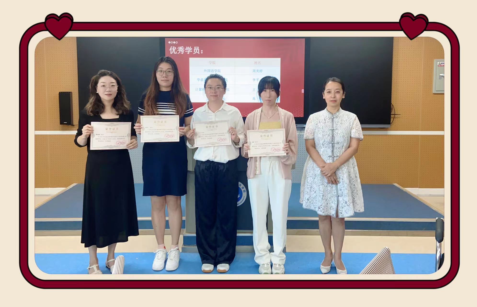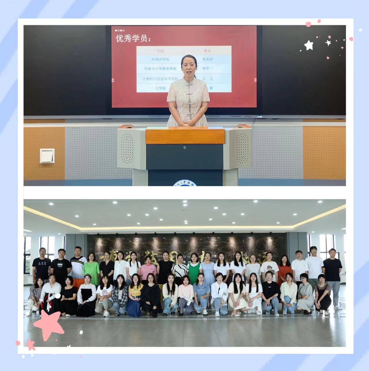 第一项——教务处王冰副处长对上学期的培训进行总结,同时邀请了4位优秀学员教师代表分享参加培训的收获和心得,为新入职教师树立了榜样。随后,教务处赵卓处长为优秀学员教师代表颁发结业证书。