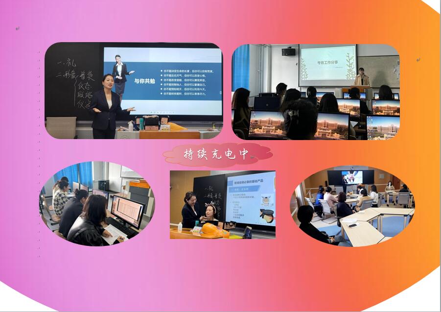 精英班由管理学院办公室副主任兼教学秘书张爽老师主讲的《职场形象礼仪》在智慧教室1413进行培训,通过从古至今礼仪文化的传承与不同区域所存在文化差异为导入,对现代职场礼仪进行细致的讲解,通过着装、仪态、联络、仪容四个方面将职称形象礼仪全面展开。在培训的后半场进行了职场妆容的实践环节,在场的同事们纷纷观摩学习,并表示此次培训有助于自身形象的改变与提升,树立独立自信的教师形象,加强同事之间互相尊重,建立友好合作的关系。