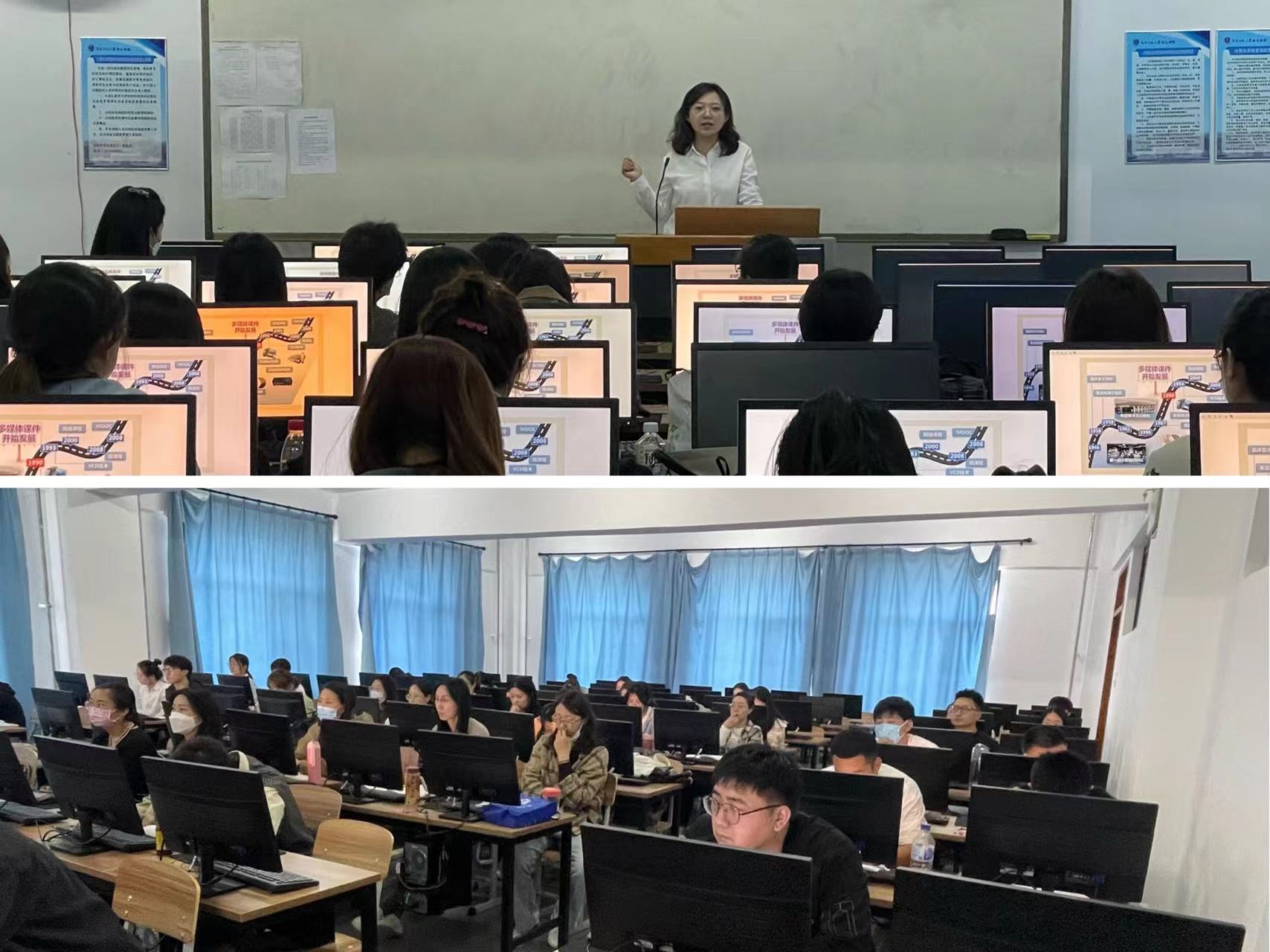 为提升学校新入职教师运用现代信息技术改造课堂能力,顺应现代信息化教学模式发展,全面提高教学效果和教学质量,教师教学发展中心于9月23日下午,邀请教务处实践科副科长王琳琳在综合楼1411机房为新入职教师进行“高校教师课件设计与制作”专题讲座。