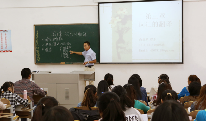 9月17日14时,本学期优秀教师公开课活动在3220教室拉开序幕。首次公开课由西语系副主任徐东老师主讲,公开课吸引了各系(部)专职教师纷纷前来学习观摩。