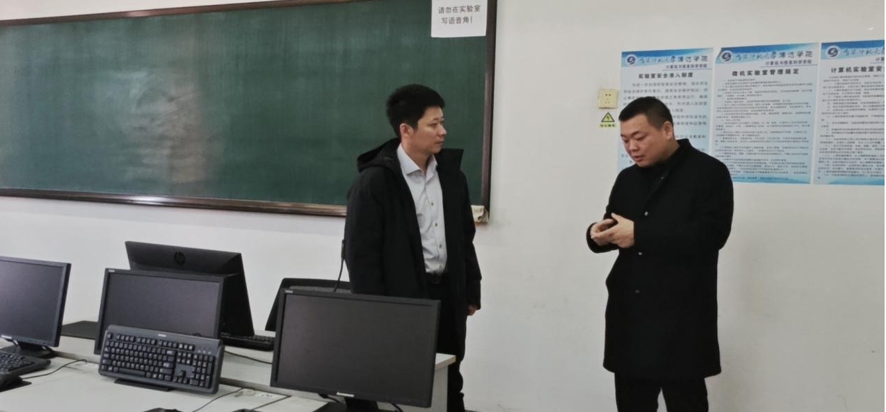 副校长张宏源深入计算机与信息科学学院与传媒学院开展实验室安全检查,并就新学期工作进行指导。实地视察了实验室、机房等重点区域,详细了解消防安全、实验室安全、网络安全等方面的工作落实情况。