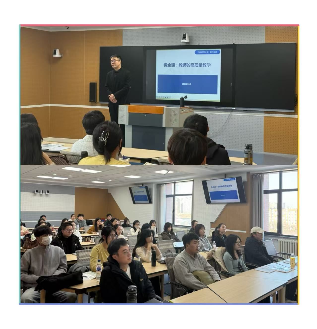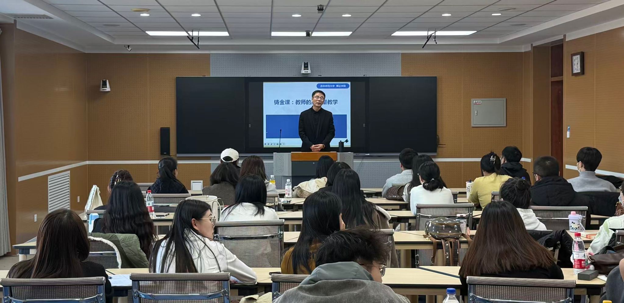 为帮助新入职教师了解教学标准,夯实教学能力。11月14日下午教务处邀请吉林师范大学高峰教授在综1413智慧教室为新入职教师作“铸金课——重要的是教师的高质量教学”专题培训。