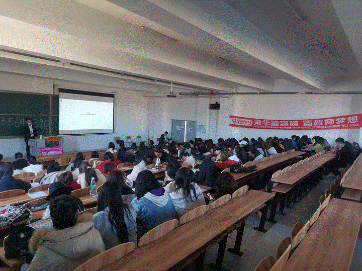 为提高我院学生特岗教师考试上岸率,3月24日下午1:30—3:00,由我中心与吉林中天华图教育文化发展有限公司(以下简称华图教育)联合承办的特岗教师备考首场专题讲座在我院综合楼1118教室准时开讲。