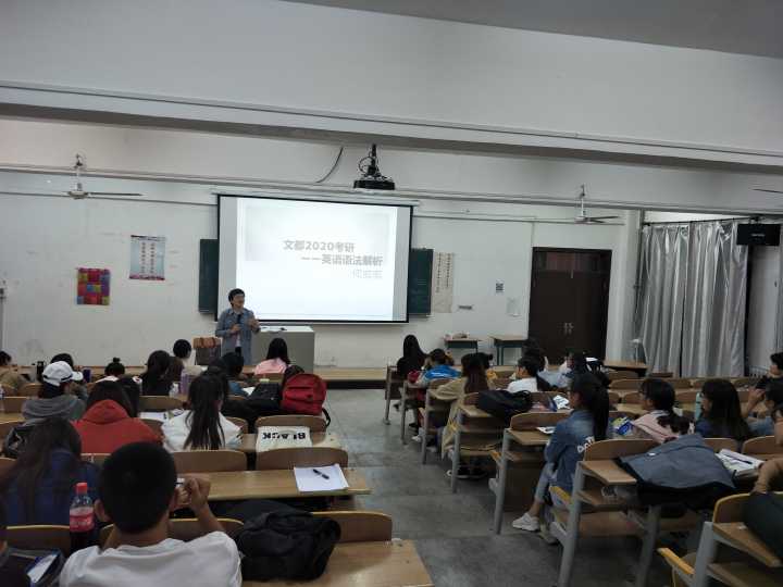 英语是绝大部分学生考研失败的“拦路虎”,为进一步提高考研学生“打虎”能力,提高考研英语成绩,9月20日晚6时30分,我院在3220教室举行了考研英语公开课,由文都独家英语教师何威威老师主讲,我院和吉林师范大学的考研学生参加了本次活动。
