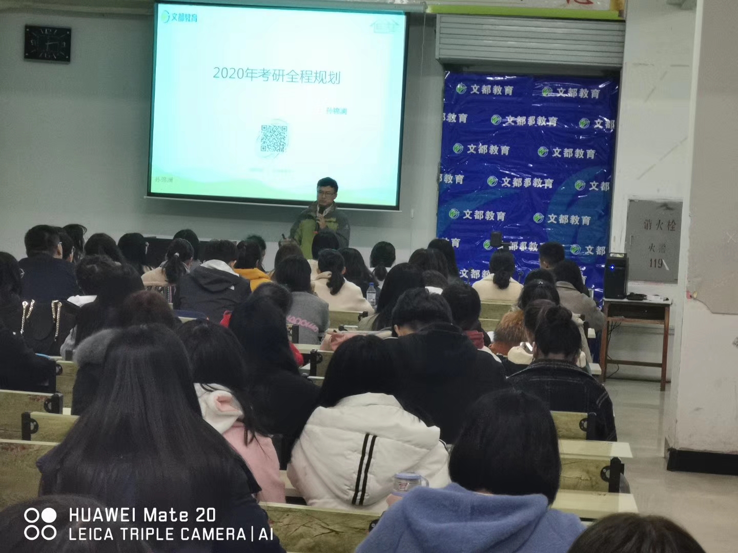 2019年考研圆满结束,2020年考研已在路上。如何科学规划近一年的考研之路,让考生考上自己心仪的学校,2月28日晚18时00分,我院与四平铭睿文都教育在吉林师范大学邮局对面文都教室举行了考研院校专业战略规划公开课,由文都考研独家全程规划讲师孙锦澜主讲。