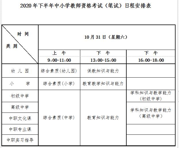 考试日期为2020年10月31日(周六),各科目笔试考试时间为120分钟。