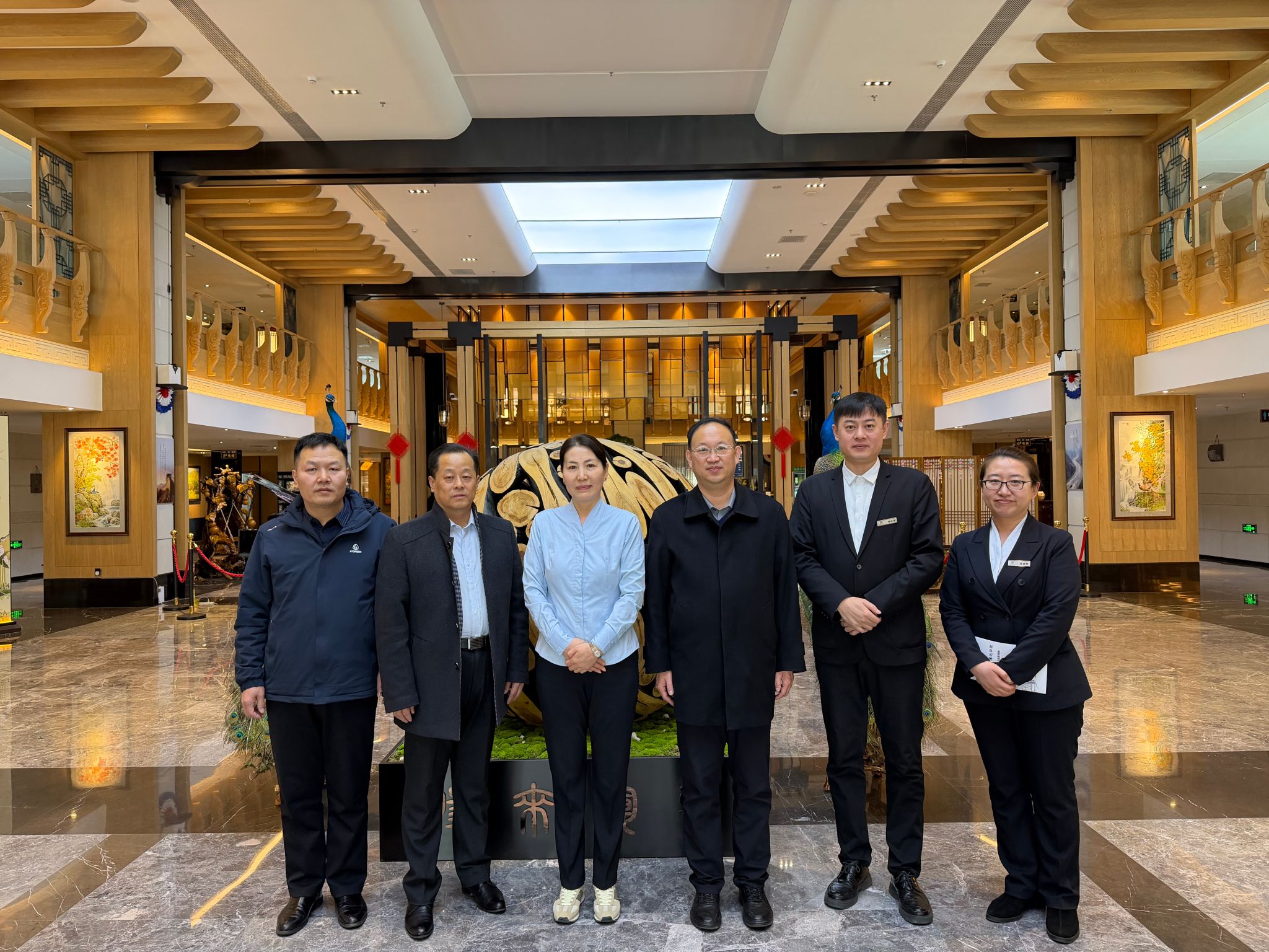 调研组首先来到珲春市民族国际花园酒店。作为珲春市高端酒店行业的标杆企业,该酒店是集住宿、餐饮、会议、休闲于一体的综合性五星级朝鲜族民俗文化花园酒店。在酒店副总经理刘秀华的陪同下,参观了酒店前厅、客房、餐饮部及行政办公区,实地了解了企业的运营管理模式及对服务类人才的专业技能要求。
