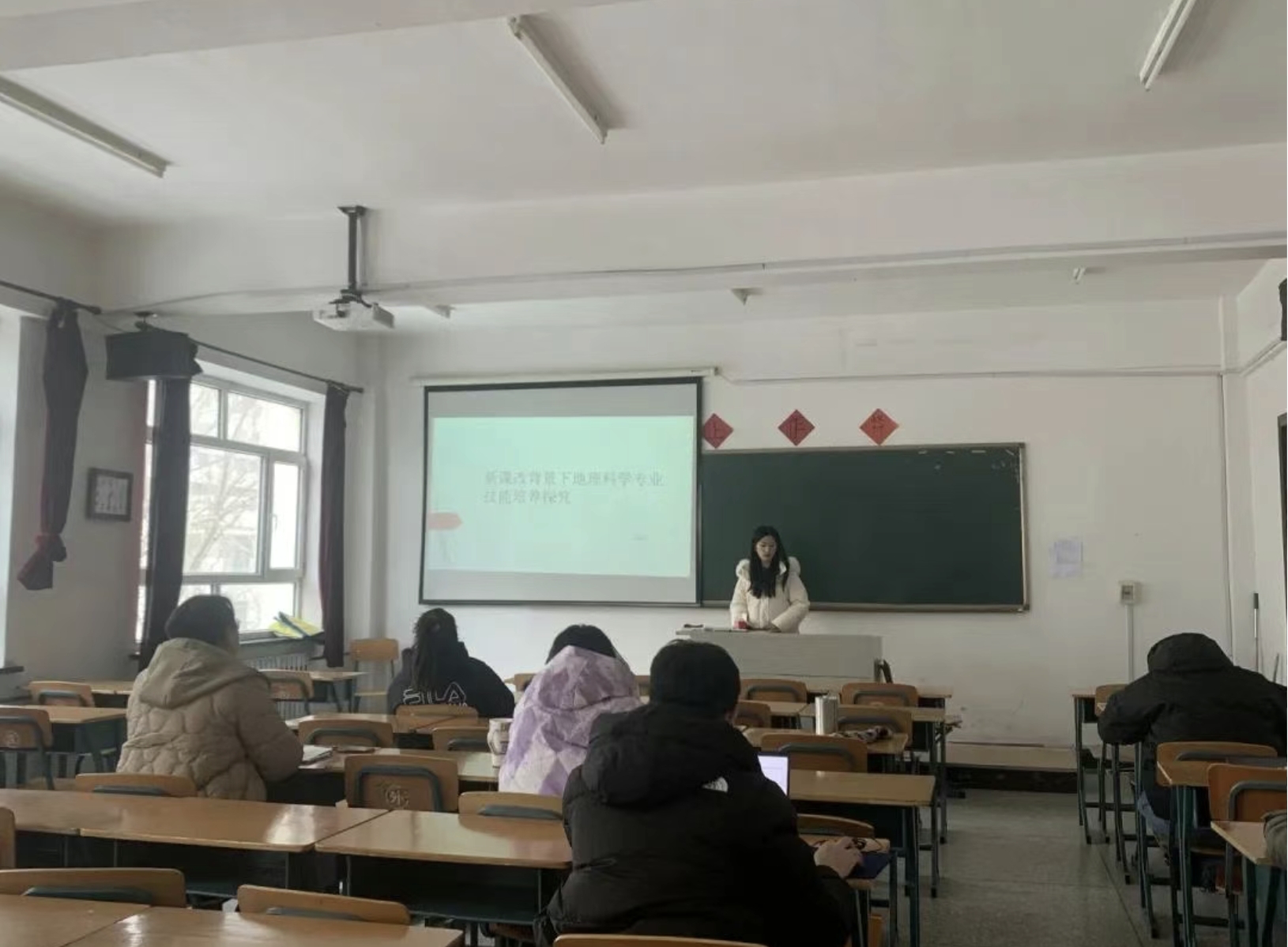 为革新地理教学观念,优化教学关系,帮助学生促进自身知识的优化与重组,提高专业技能,2024年11月27日,旅游与地理科学学院于老校区三教3314教室开展“新课改背景下地理科学专业技能培养探究”主题教研会,本次教研会由旅游与地理科学学院邱红老师主讲,旅游与地理科学学院11位专职教师参与本次教研会。