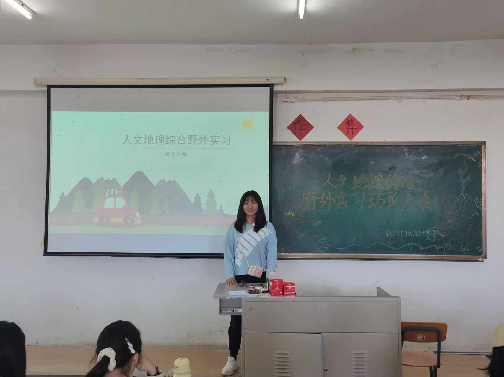 旅游与地理科学学院于2025年6月6日10:00在老校区三教3322教室召开2022级人文地理综合野外实习动员大会。本次大会由关洁老师主持,全体2022级地理科学专业学生参会。