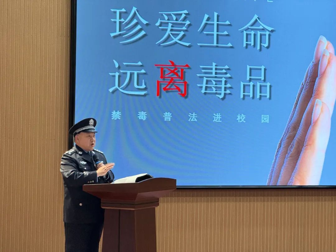 随后,戒毒大队大队长张剑警官进行发言,并结合大学生群体特点剖析涉毒典型案例。通过真实案件数据与视频资料,警示同学们保持警惕,坚决对“第一次尝试”说不。