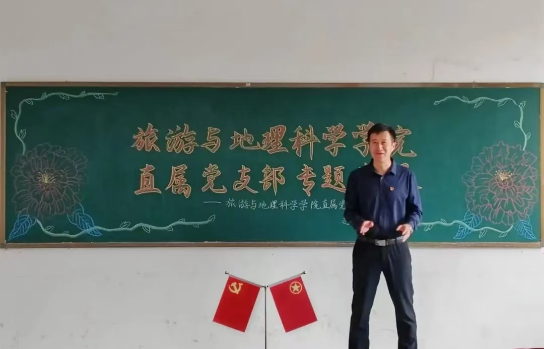 为深入学习贯彻党的二十大精神,树立和践行“绿水青山就是金山银山”的理念,提高同学们对生态文明建设的意识,始终坚持人与自然和谐共生,旅游与地理科学学院直属党支部于2024年5月15日下午15:00在老校区三教3206教室开展“人与自然和谐共生”主题党课,本次党课由党支部书记柳志明同志组织召开,旅地学院党员和积极分子到场学习。