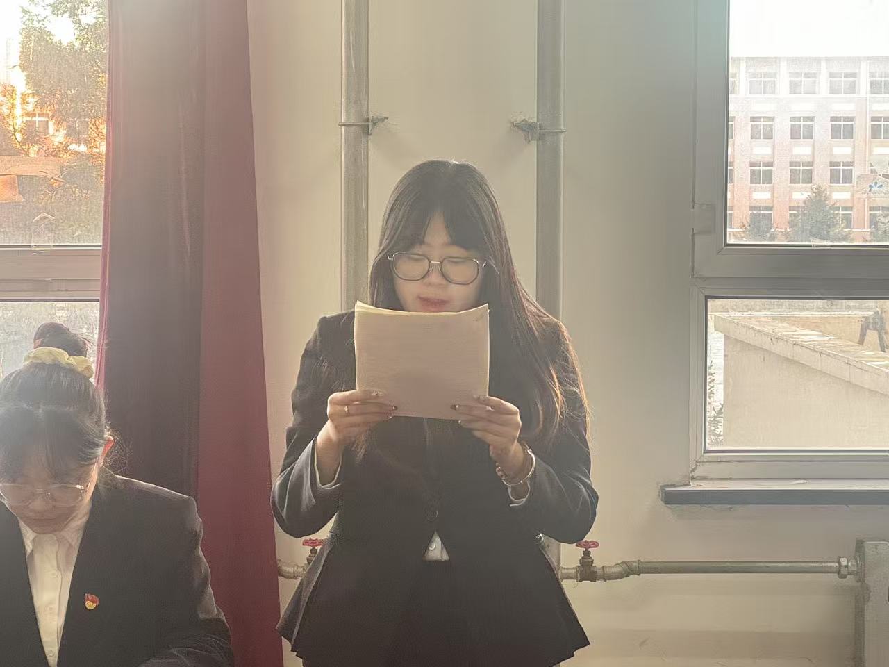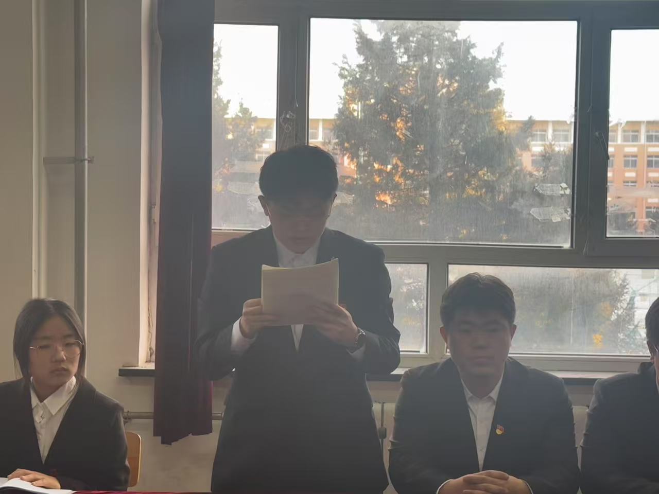 胡熠、郑思彤、郭子瑜、秦越、罗俊杰、祖鸣枫、闫鋆七名预备党员宣读《转正申请书》,汇报自己在预备期间的表现,肯定成绩、找出差距、表明决心并说明有关问题。随后,预备期间的考察联系人党支部书记夏师澄同志介绍2021级预备党员在预备期间的表现。