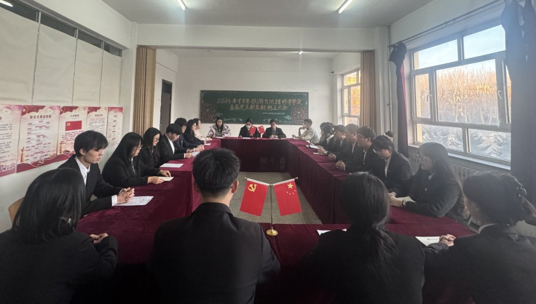 为深入贯彻党的路线方针政策,进一步加强党组织建设,提升党支部的凝聚力,经过党支部一年来的培养考察,征求党内外群众意见,综合党员、群众反映的问题及党组织调查核实情况,吉林师范大学博达学院旅游与地理科学学院直属党支部于2024年12月15日15:30在老校区三教3206党员活动室召开预备党员转正大会,全体党员参与会议并讨论预备党员转正事宜。