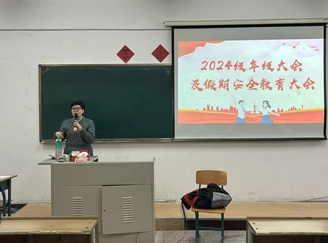 大会上,夏师澄老师着重对考风考纪进行了说明,再次强调诚信考试的重要性,希望同学们能够合理规划复习时间,树立正确考风考纪意识,共同营造良好学习氛围。此外,夏老师对假期安全问题进行重点强调,提醒同学们在假期期间时刻保持敏锐性、警惕性,提高明辨是非的能力,注意甄别网络信息,谨防网络诈骗,保护个人安全。