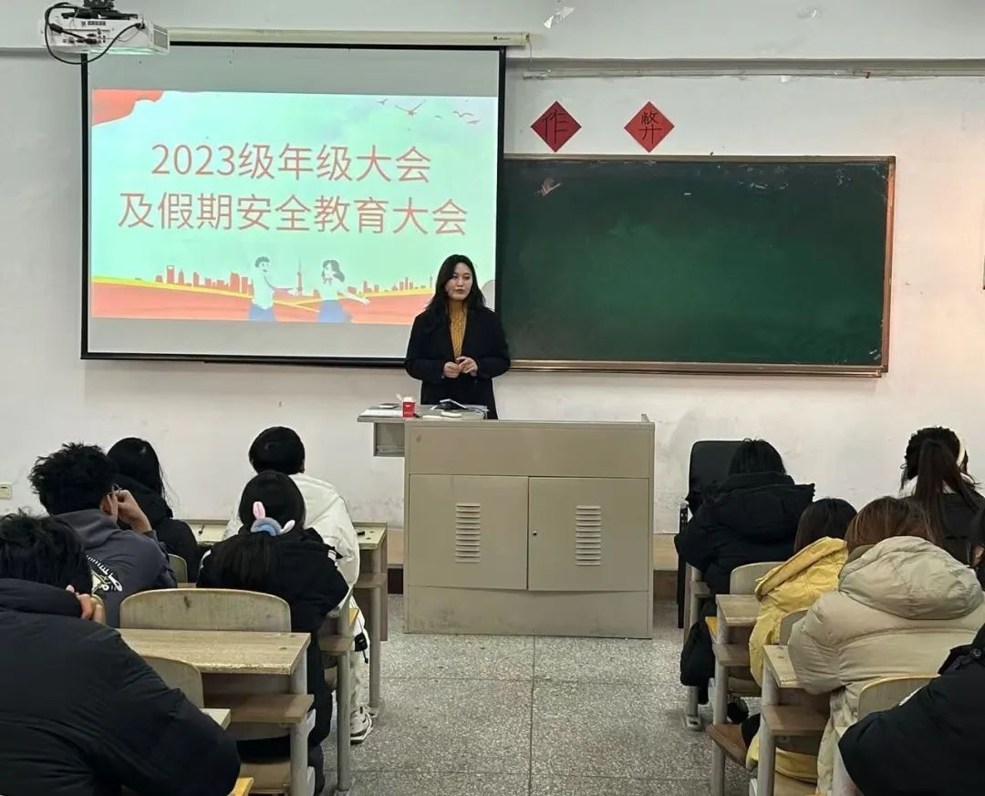 为进一步加强学院学风建设,强化假期安全教育,提高学生安全意识,明确学生行为规范,旅游与地理科学学院于2024年12月4日15:20在三教3322和3321教室召开2023、2024年级大会及假期安全教育大会。学工办主任夏师澄老师、辅导员张卓老师主持召开会议,2023、2024级全体同学参加。