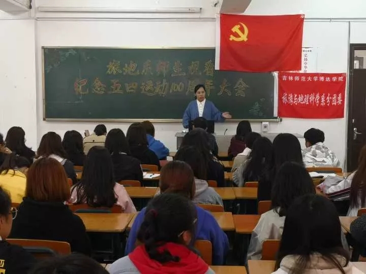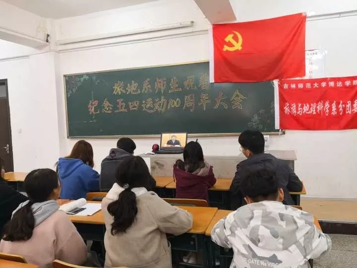 2019年4月30日上午10时30分,吉林师范大学博达学院旅游与地理科学系师生联合党支部、分团委组织观看了纪念五四运动100周年大会直播,认真学习习近平总书记在纪念五四运动100周年大会上的重要讲话。