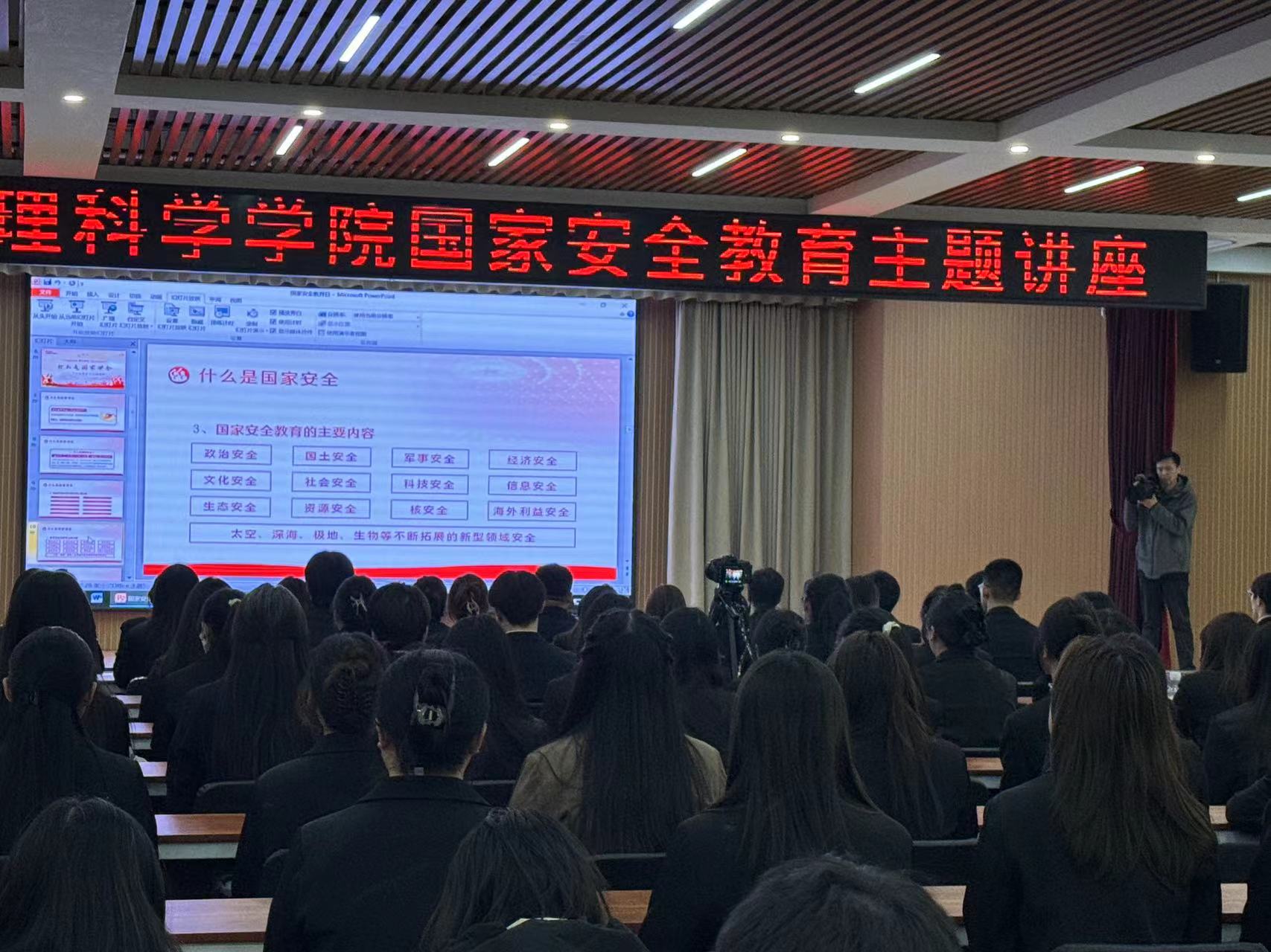 刘警官指出,国家安全是国家生存发展的基本前提,维护国家安全是每个公民的责任和义务。他通过生动的案例和深入浅出的讲解,向在场师生介绍了国家安全的内涵、外延以及当前国家安全面临的形势和挑战。他强调,维护国家安全需要全社会的共同努力和长期坚持,呼吁广大师生要时刻保持警惕,提高防范意识,如发现任何危害国家安全的情况和线索,要及时向国家安全机关或公安机关报告。如拨打“12339”国家安全机关受理公民和组织举报电话,共同维护国家安全的良好氛围。